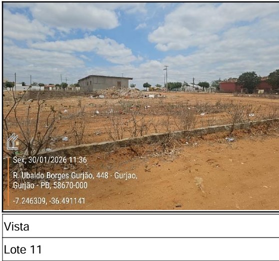 Localização: Terreno em | Número: RUA PROJETADA 4 LT 11 QD B GURJAO - PB